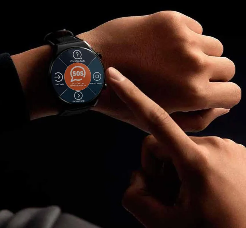 Solo necesitas dar tres toques rápidos sobre la carátula del smartwatch. Al hacerlo, se abrirá automáticamente el panel de emergencia con un botón SOS en pantalla. Al presionarlo, te pondrás en contacto directo con nuestro centro de atención de emergencias.