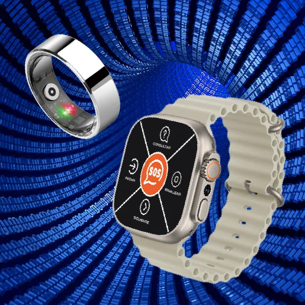 Mientras el brazalete monitorea continuamente eventos críticos y permite enviar alertas inmediatas con solo presionar un botón, el anillo complementa esta función al registrar de forma constante signos vitales como la frecuencia cardíaca, la oxigenación y la temperatura corporal.